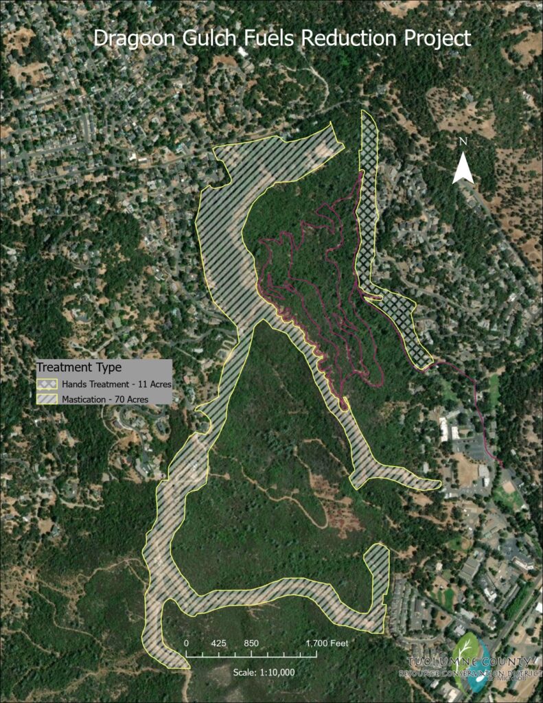 The Tuolumne Fire Safe Council (TFSC) was awarded a grant in December 2024 to treat fuels and widen the fuel break around the Dragoon Gulch hiking area and reduce hazardous fuels nearby. This grant-funded project will significantly increase wildfire safety for surrounding communities, including Sonora Knolls, Gibbs Ranch, and Racetrack Road.